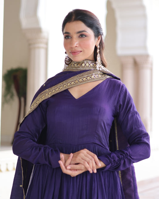 Deep Purple Georgette Anarkali Gown With Dupatta