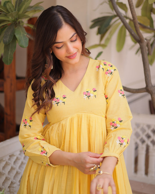 Afsana Sunshine Yellow Floral Embroidered Cotton Suit Set