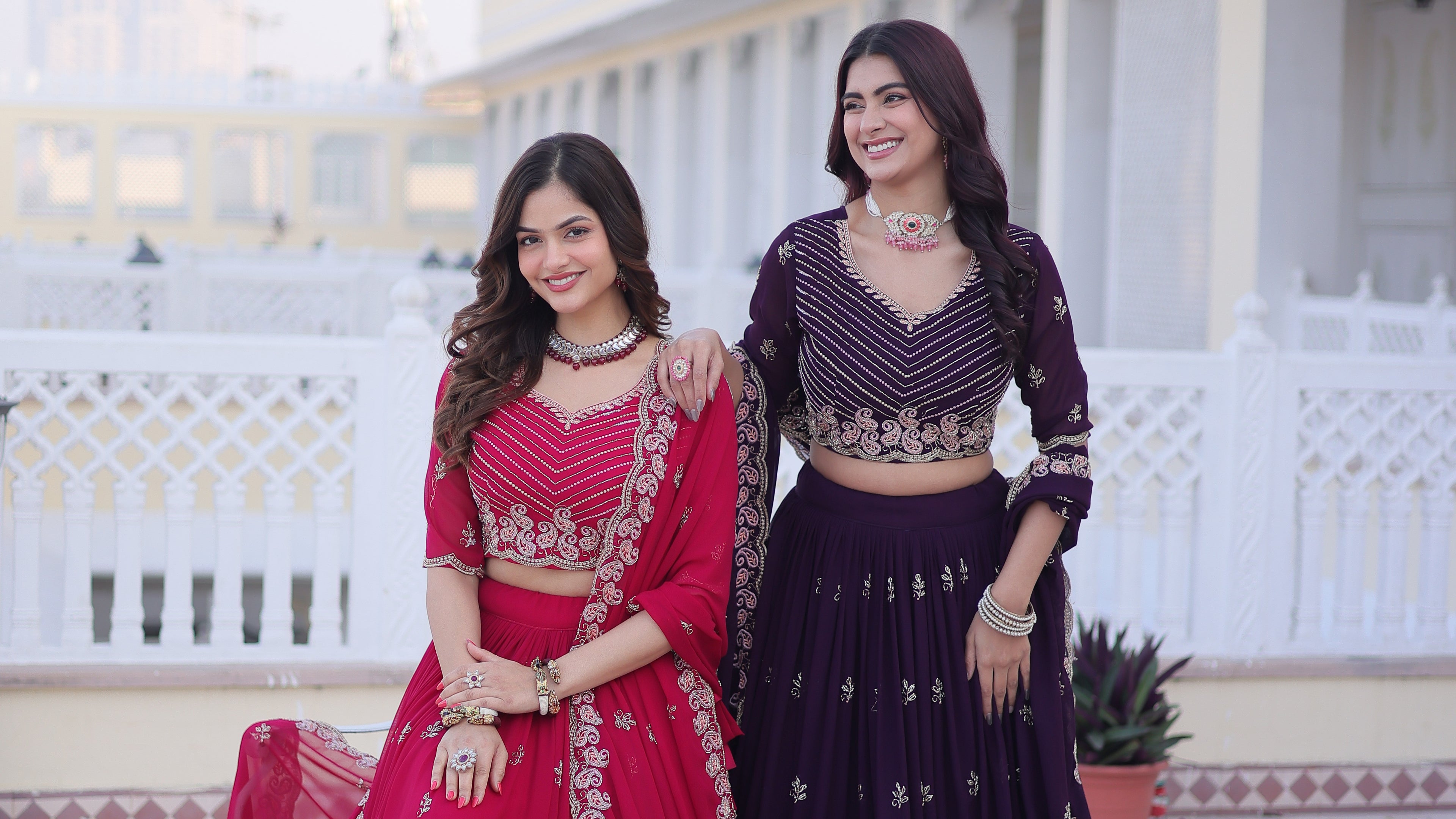 Kaavya Deep Wine Paisley Embroidered Lehenga Set