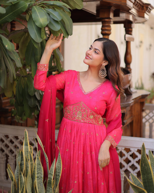 Gulabo Rani Pink Embroidered Gown With Duppata