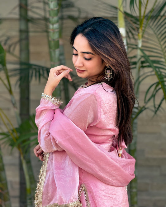 Gulabi Sitara Blush Pink Tissue Silk Salwar Suit Set