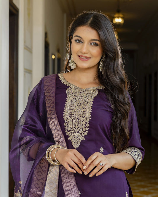 Tarang Deep Violet Gold Zari and Sequin Embroidered Kurta Set