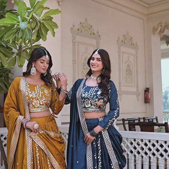 Immerse yourself in timeless royalty with the Royal Neelam Festive Lehenga Choli, crafted for women who love elegance with a bold, regal presence. The deep navy hue beautifully enhances the intricate heavy 3mm sequence and thread embroidery, giving the ensemble a luxurious and majestic appeal.