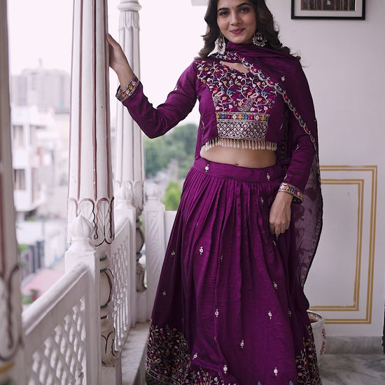 Indulge in regal sophistication with Rangraaga Wine Royale, a statement lehenga set designed for women who embrace festive elegance with confidence. Drenched in a luxurious Wine (Deep Magenta) tone, this ensemble reflects timeless Indian craftsmanship paired with modern grace.