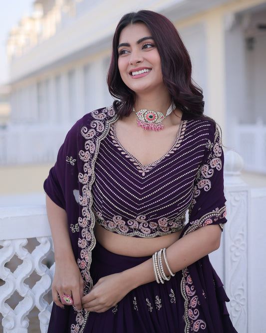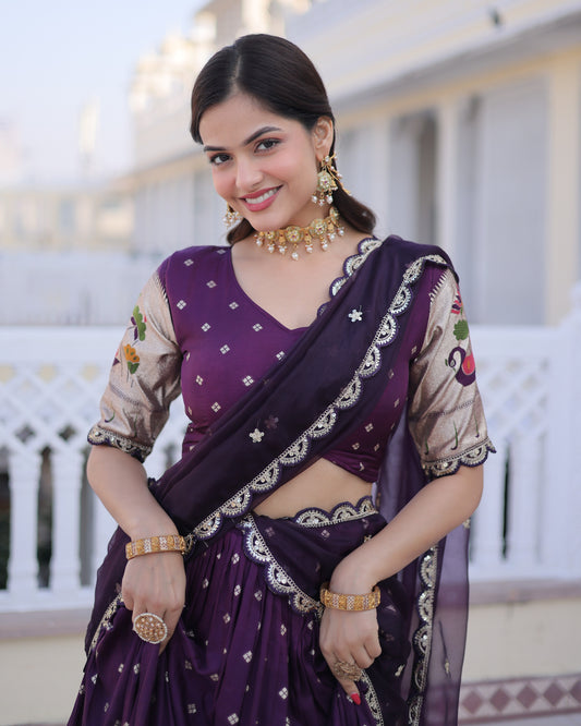 Vrindaa Wine Purple Paithani-Border Embroidered Lehenga Set