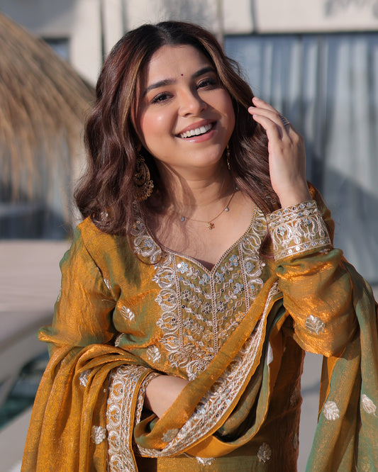 Golden with Olive Green Duel Tone Sharara Suit Set