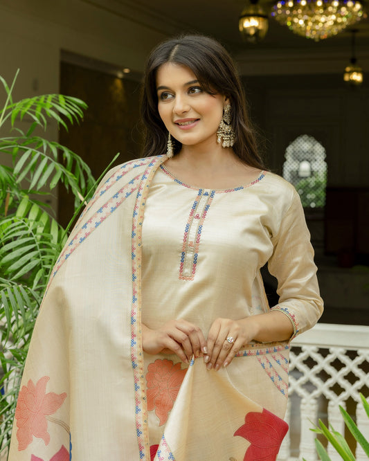 Shreya Cream Gold Multicolour Embroidered Kurta Set