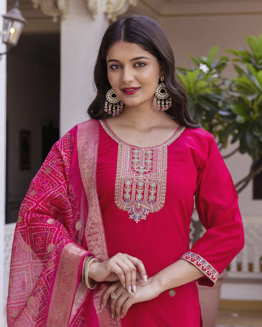 Gulabo Rani Pink Gold Zari and Resham Embroidered Kurta Set